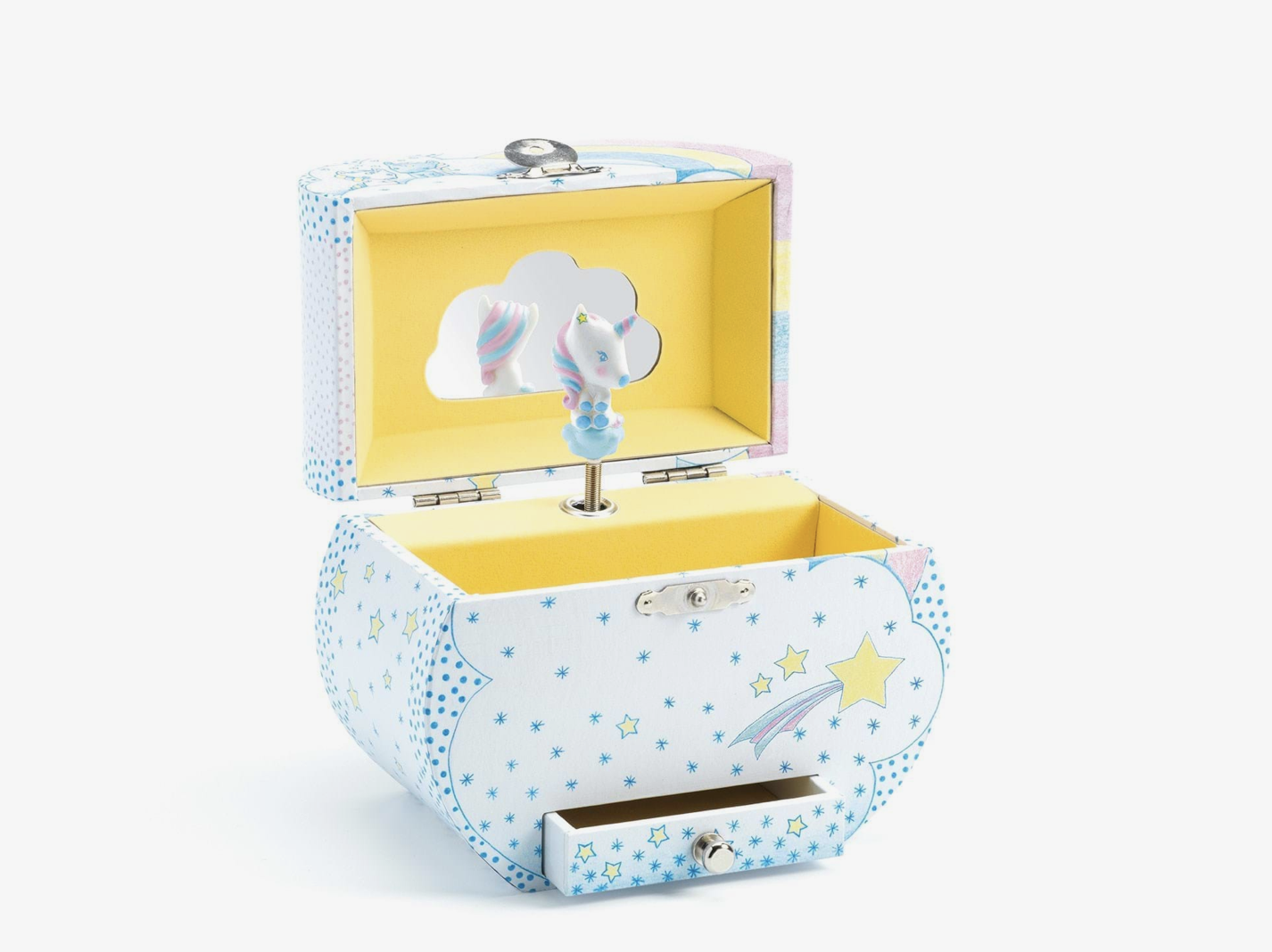 Découvrez notre magnifique boîte à bijoux en forme de nuage avec musique, mettant en vedette un adorable licorne ! Parfaite pour ranger vos trésors précieux, cette boîte ajoutera une touche féerique à votre décor.