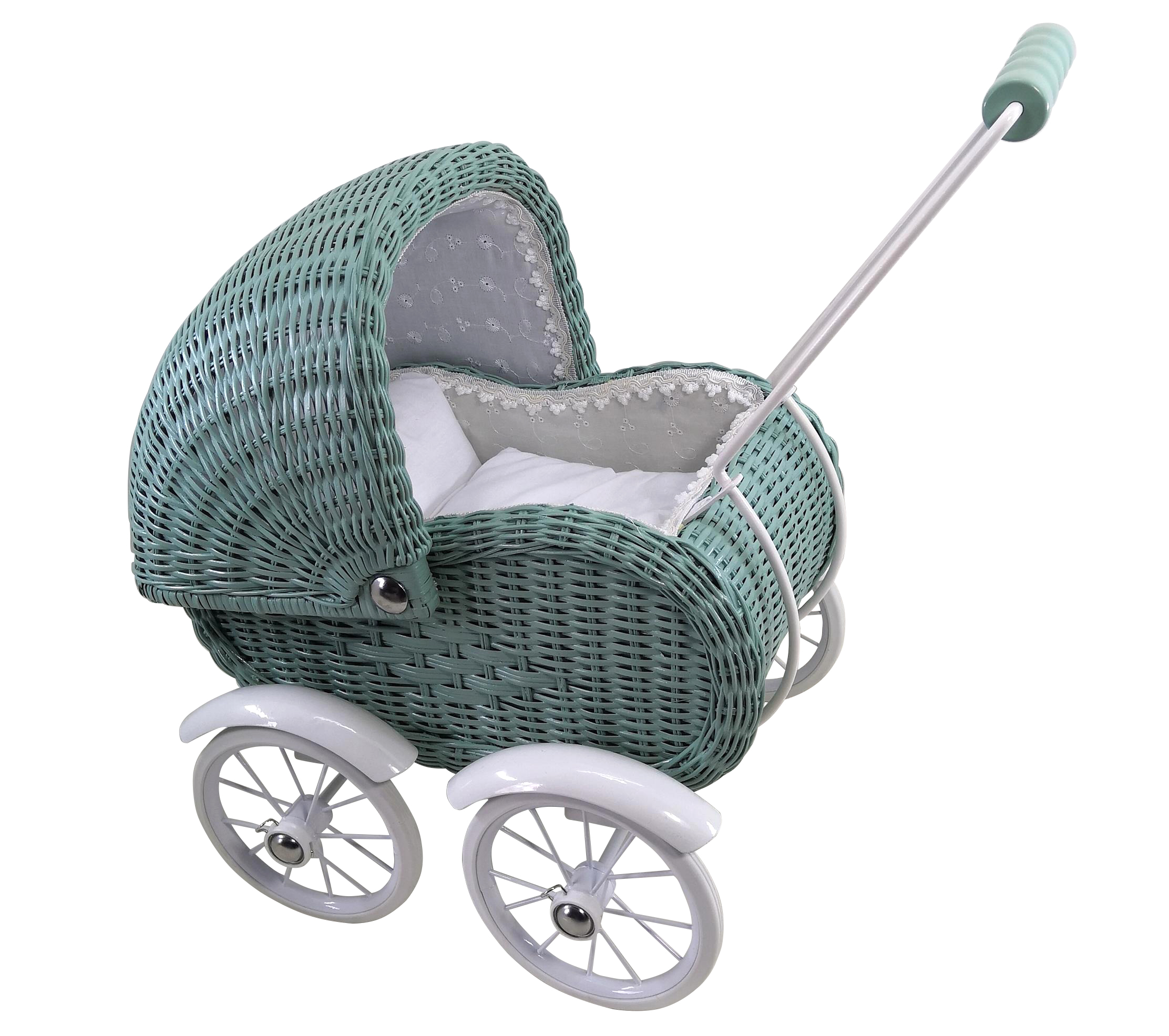 Poussette de poupée en osier – Vert Poussiéreux