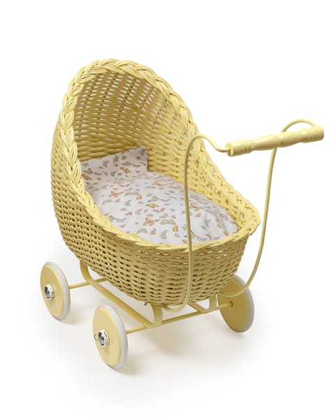 Poussette pour poupée en osier naturel – Jaune